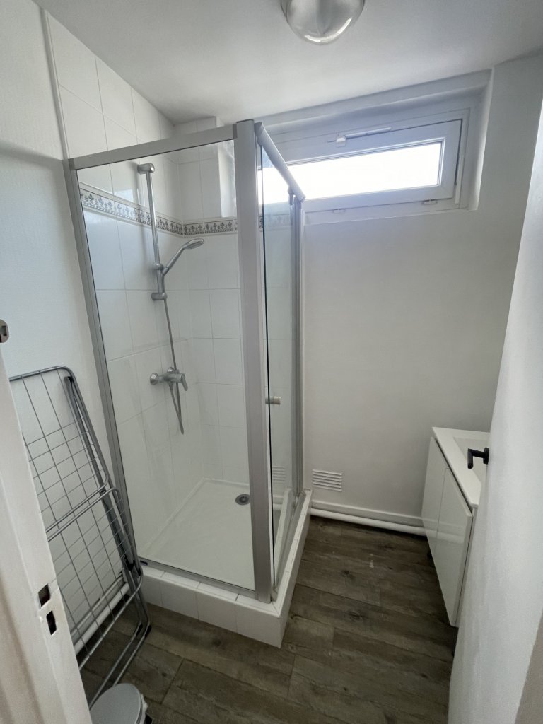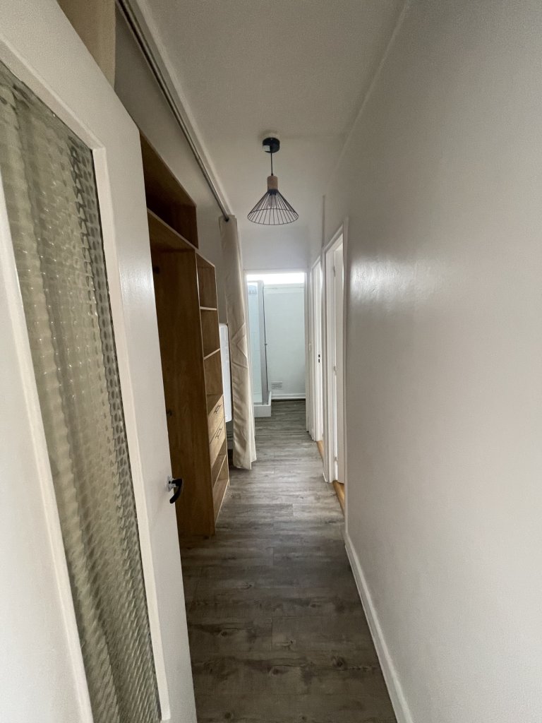 Situé au 3e étage d’une résidence de 4 étages, cet appartement dispose d’une cuisine toute équipée, une arrière cuisine, une grande pièce de vie, un couloir donnant sur 2 chambres et une salle d’eau avec WC.
