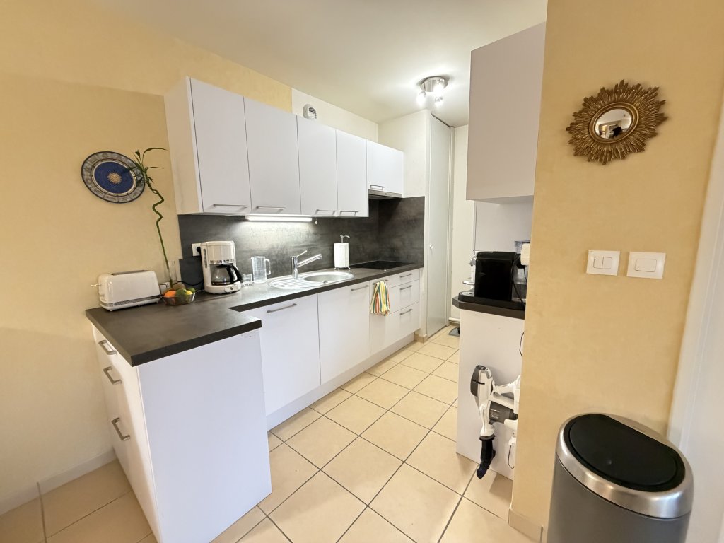 Situé au 2e étage d’une résidence récente, une entrée donnant sur un WC séparé, une salle de bain avec douche refaite récemment, une grande pièce de vie avec cuisine ouverte et équipée ainsi que 2 chambres avec penderie.