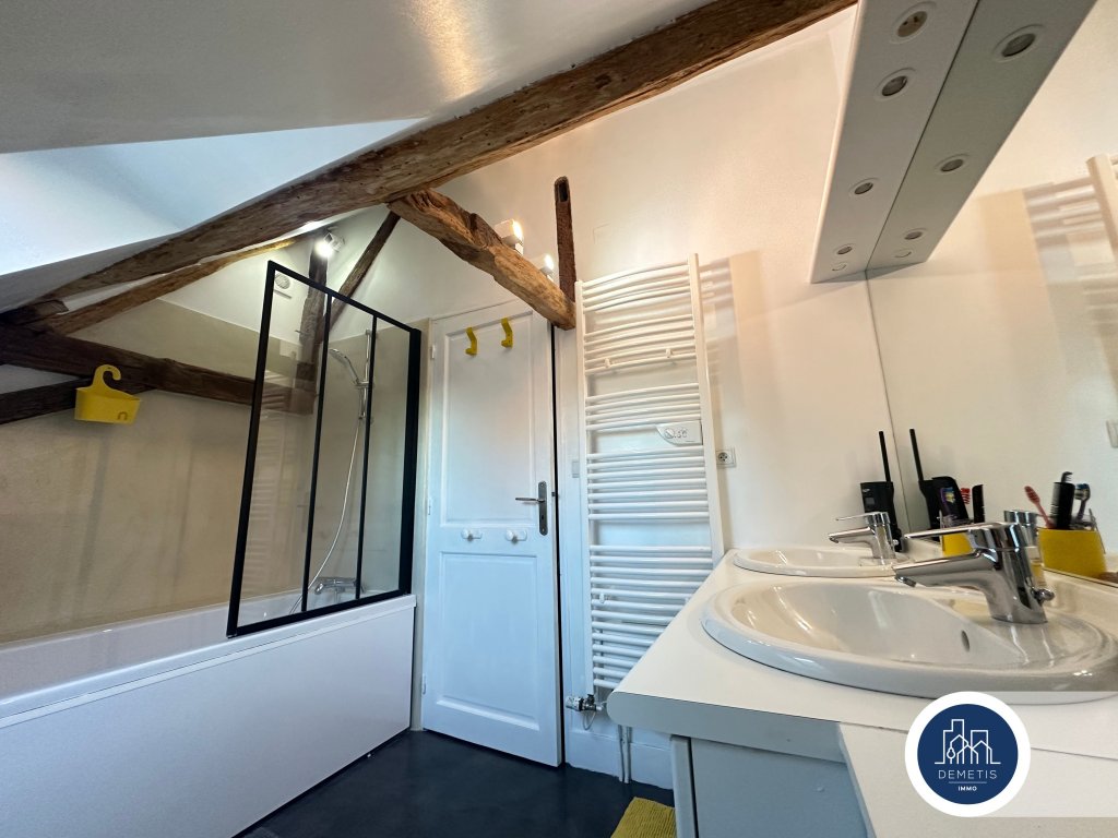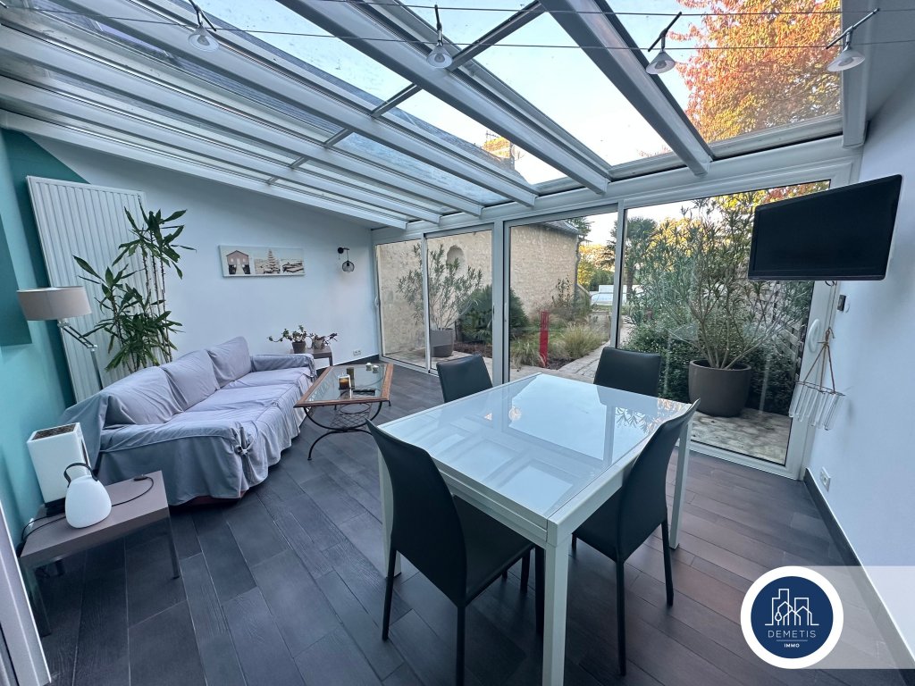 Vous profiterez d’un espace salon avec cheminée et poutres apparentes, un salon, une magnifique cuisine aménagée et équipée donnant accès à une véranda avec vue sur le jardin, un bureau et une salle d’eau.