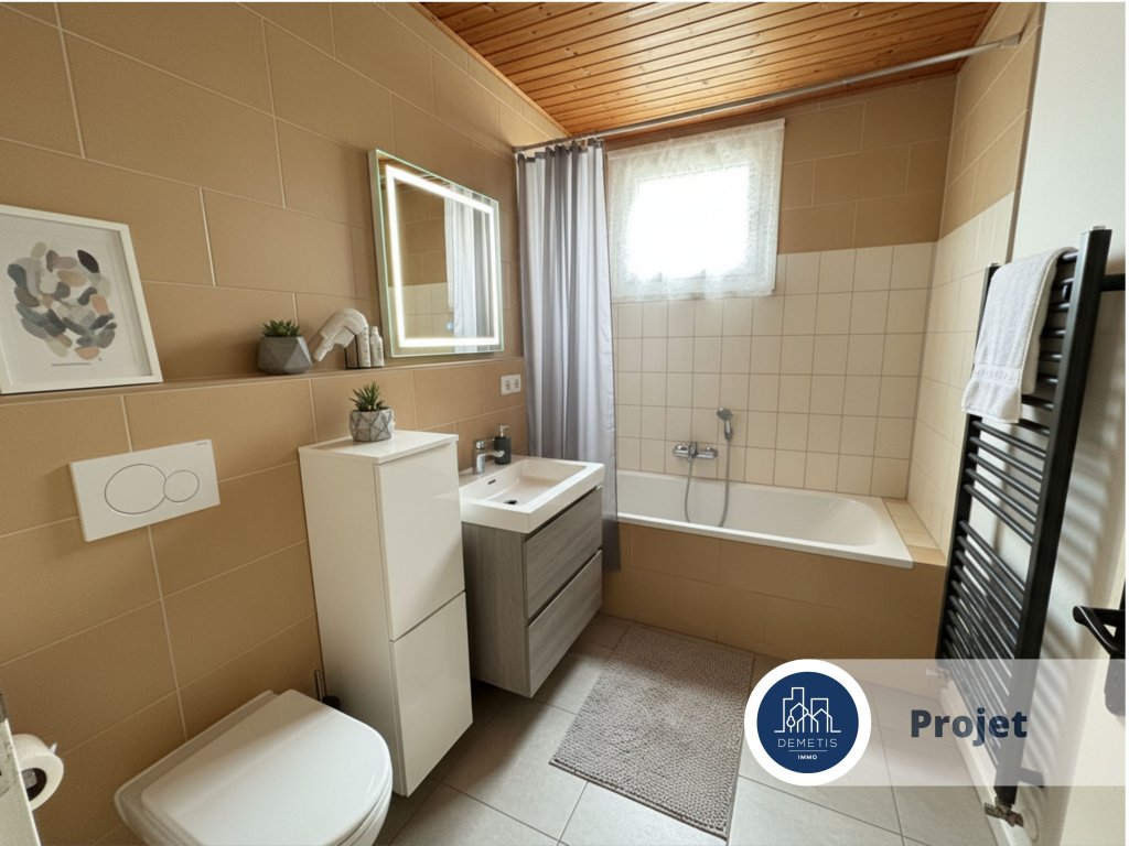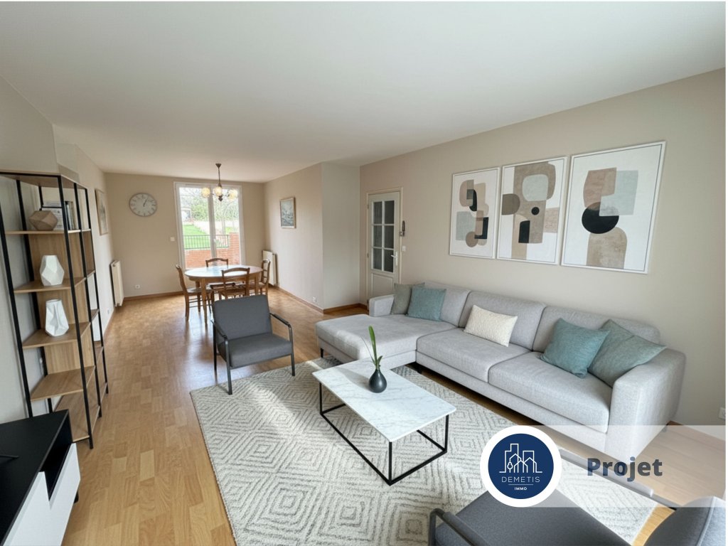 La maison offre un garage avec grenier aménageable, une terrasse et un jardin.