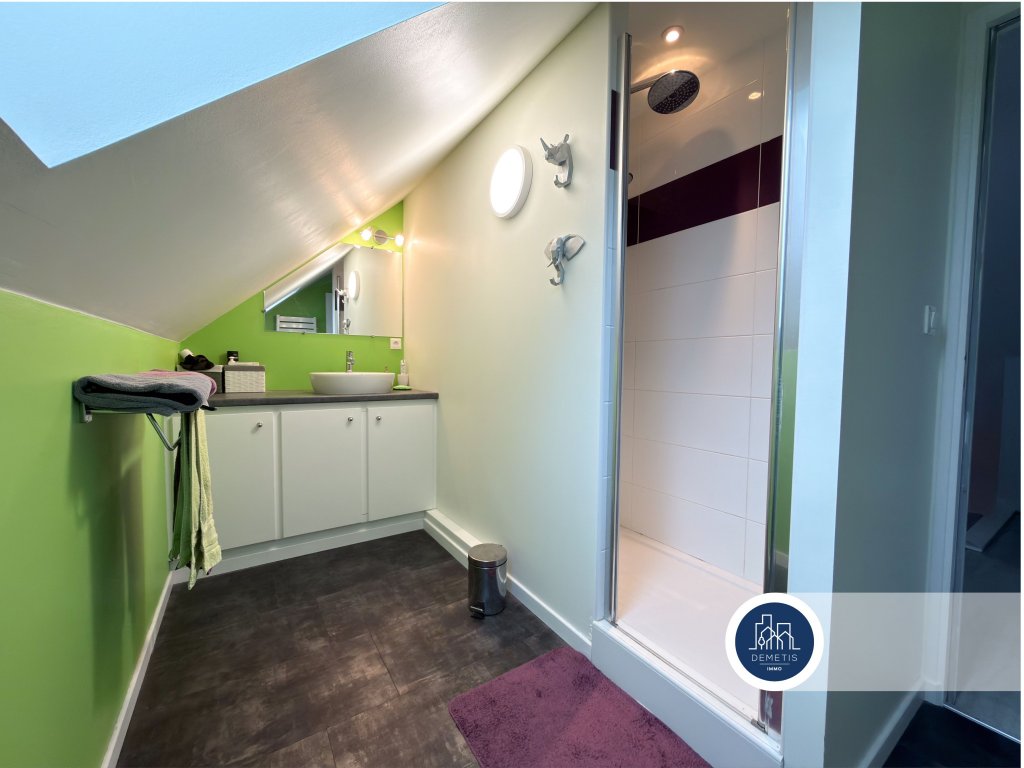 À l’étage, vous trouverez deux autres chambres, une mezzanine cosy pouvant servir de coin lecture, bureau ou espace détente, une salle d’eau et un WC indépendant également.