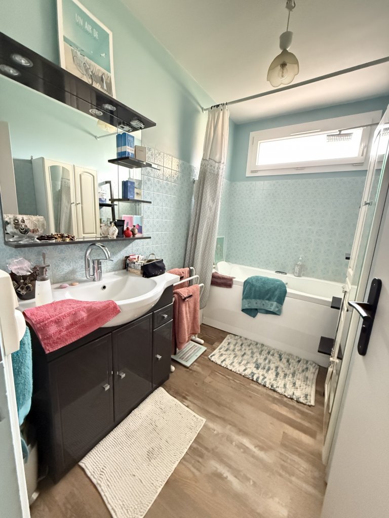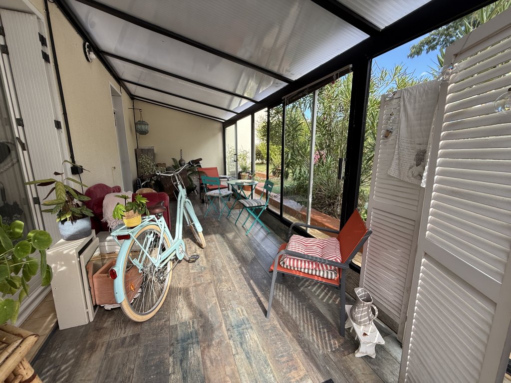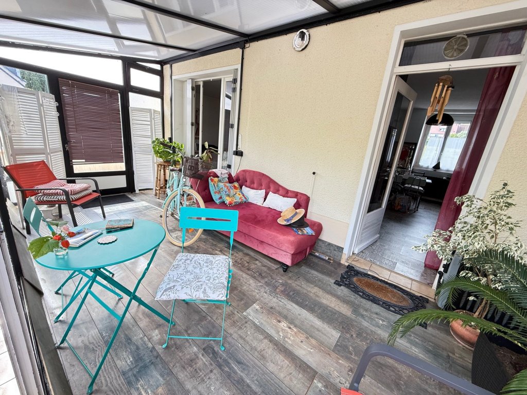 Elle se compose d’une entrée par une véranda, d’une belle pièce de vie lumineuse pouvant être réaménagée pour créer une deuxième chambre et un espace salon, d’une cuisine séparée avec un accès direct à la véranda, d’un espace placard avec chaufferie, WC indépendant, salle de bain avec baignoire, ainsi qu’une chambre de 13 m2.