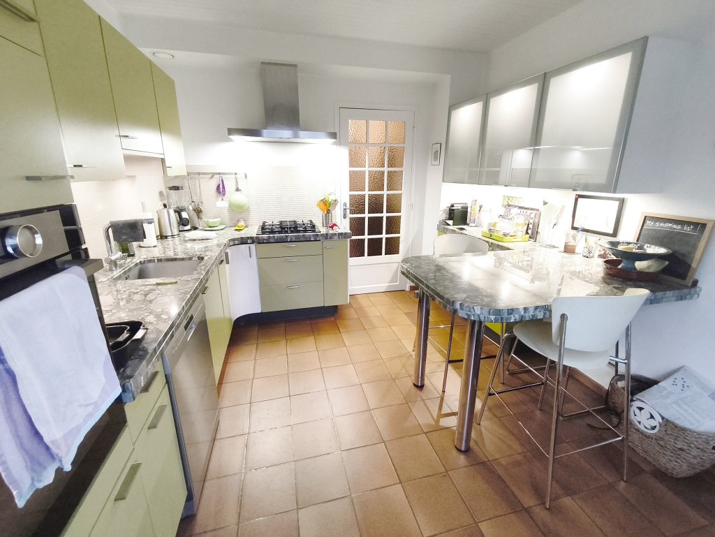 Cette grande maison d’environ 172m2 habitable vous offrira un confort pour toute la famille avec au rez-de-chaussée un salon/séjour, une cuisine A/E en accès direct sur la terrasse équipée d’un store banne motorisé de 5x3m pour les repas ensoleillés, ainsi que trois chambres avec rangements, un WC indépendant, et une salle de bains avec douche.
