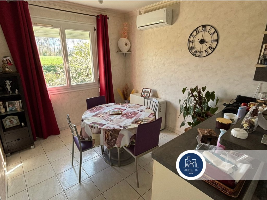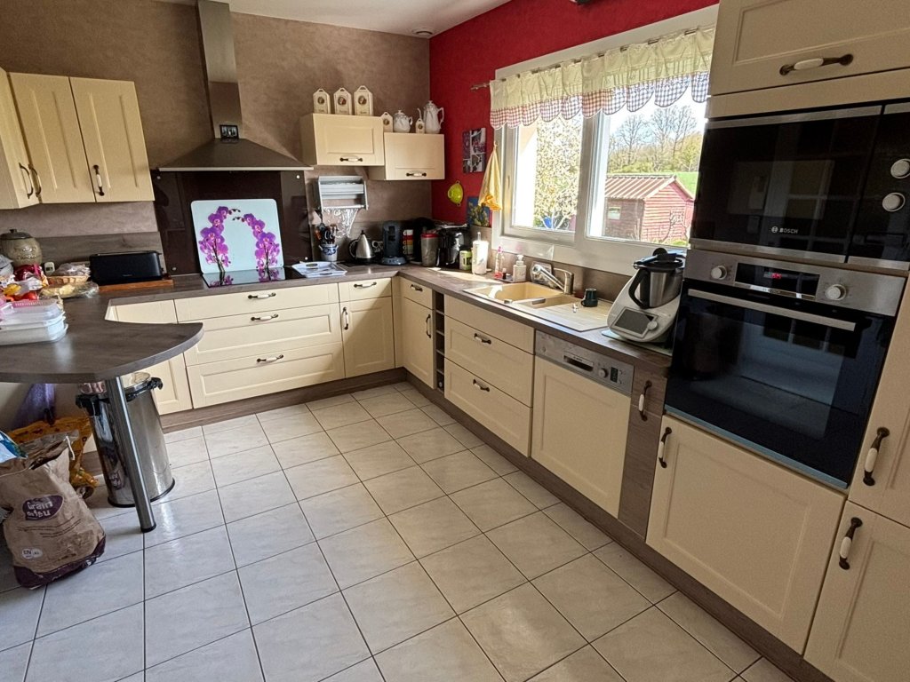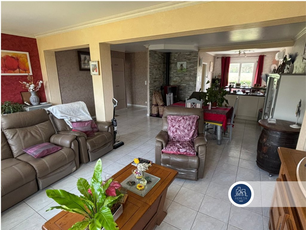 Dès l’entrée, vous découvrirez un spacieux et lumineux salon-séjour, véritable coeur de la maison. Cet espace de vie convivial est agrémenté d’un poêle à pellets et d’un système de climatisation réversible, offrant un confort optimal en toute saison. Dans son prolongement, une cuisine entièrement aménagée et équipée vient compléter cet espace de vie harmonieux.