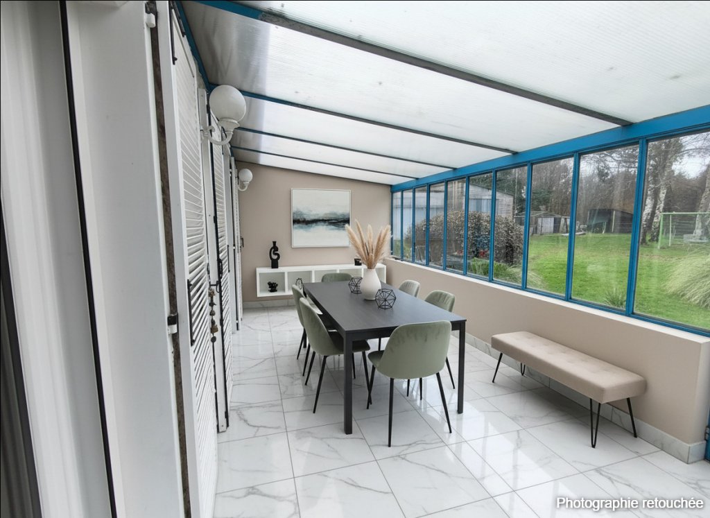 Ce bien se compose d’une entrée avec WC et placard de rangement, une cuisine aménagée et équipée, un salon/séjour avec cheminée bois à insert assorti d’une grande véranda.