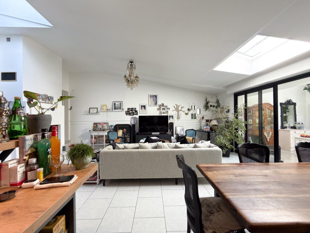 Vous pourrez profiter d’une entrée avec couloir desservant une grande chambre de quasiment 30m2, un espace de vie de plus de 70 m2 avec cuisine moderne et fonctionnelle, une grande véranda lumineuse donnant sur une terrasse et jardin arboré avec cabanon.