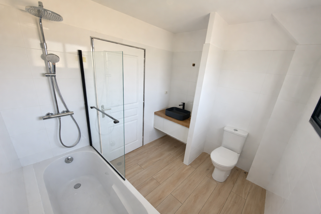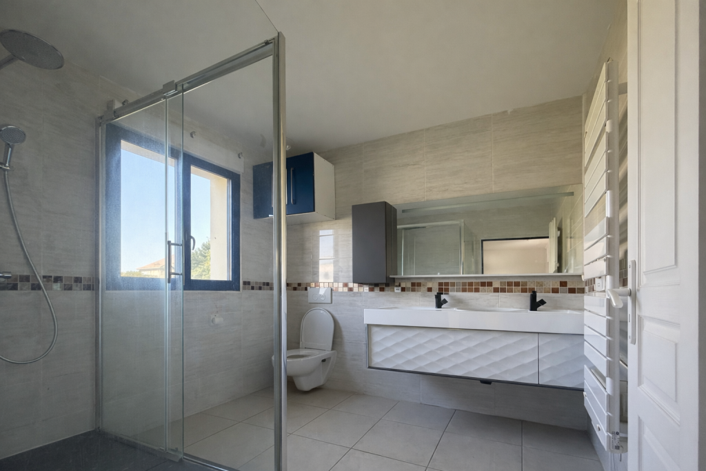 Coté garage un grand espace de plus de 50m2 avec escalier amenant sur une 5e chambre avec dégagement, possibilité de raccorder cette chambre à l’espace de l’étage.