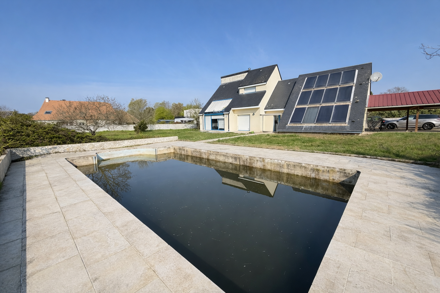 Sur un terrain entièrement clos avec portail électrique, une grande parcelle divisible avec possibilité de découper entre 1000 et 1500m2 pour une seconde construction, une pisicne hors service pour le moment ( liner à installer et groupe de chauffe ). Un carport permettant de garer 3 véhciules ainsi qu’un hangar de stockage.
