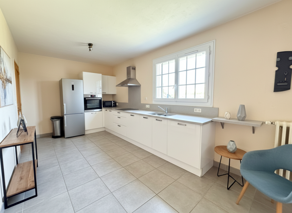 Comprenant 5 pièces dont 4 chambres, elle offre une grande pièce de vie avec cuisine ouverte, deux chambres de plain?pied, une salle de bain et un WC.