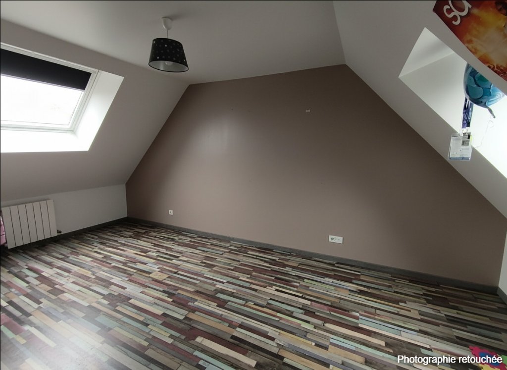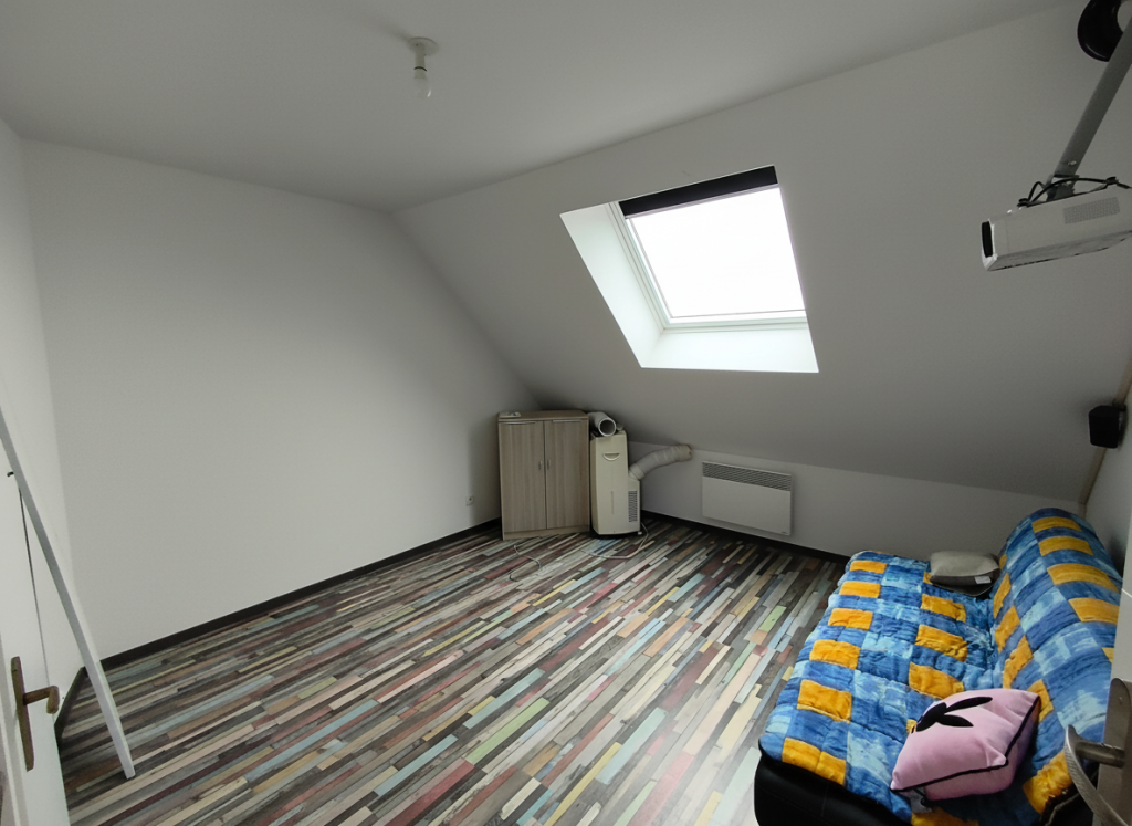 A l’étage, vous retrouverez trois chambres, une salle de bain avec douche et WC, un couloir et un dressing, garantissant intimité et fonctionnalité pour toute la famille.